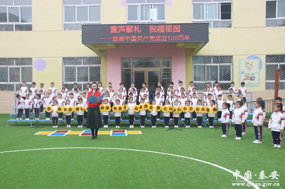 该活动以庆祝中国共产党100周年、歌颂祖国为主题。在老师有序组织下,幼儿园几个班级的小朋友们为大家带来了合唱歌曲《我爱北京天安门》《童心向党,爱在中国》等歌曲,小朋友们在舞台上认真欢快的歌唱,每个班级的老师也在台下为本班小朋友们加油打气。部分老师为大家带来的《唱支山歌给党听》等曲目,可爱的小朋友还为老师送上了鲜花,现场洋溢着欢乐和笑声。