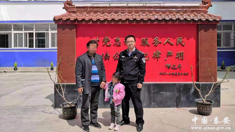 4月17日11时许,城关派出所接到辖区群众周某某的报警,在德盛大药房门口不慎和孙女走散。接警后,民警迅速到达现场,经了解周某某带孙女到德盛堂大药房取药时不慎将孙女丢失,民警一边安慰老人,一边详细询问了孩子走失时的穿着,并根据孩子的照片以孩子走失地为中心向周边扩散寻找。后经民警通过视频监控及周边人员的询问在终于在秦安县人民医院住院部门口将孩子找到。找到孩子后民警立即和家属取得联系,并将孩子带到派出所后将孩子交给家长。