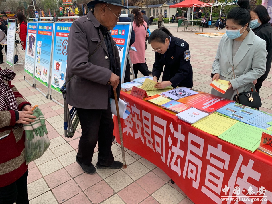 2021年4月15日是第六个全民国家安全教育日。为切实提高国家安全意识,积极做好普法宣传教育工作,4月15日上午,秦安县司法局积极参加由县委办组织的全民国家安全教育日集中普法宣传活动,活动现场,县政府办、法院、检察、公安、教育局等18个部门对国家安全相关法律法规也进行了宣传。