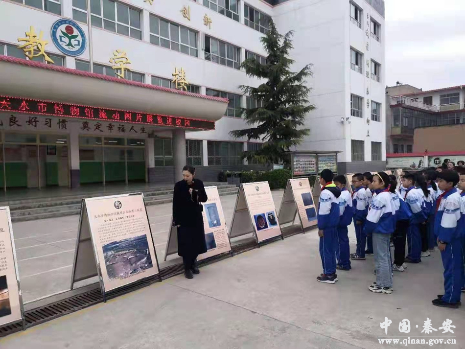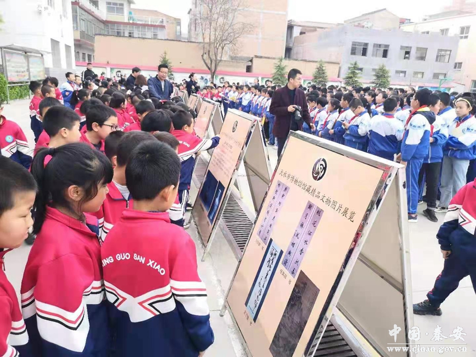 孩子是祖国的花朵,是民族的命脉,是人类的希望。4月13日,一场别有声色的活动——“天水市博物馆流动图片进校园”在秦安县兴国三小校园如火如荼地开展。此项展览活动是天水市博物馆创新展览形式的一项新举措,也是秦安县兴国三小深化党史学习,传承历史文化的系列活动之一,旨在让孩子们感受天水深厚的文化底蕴,从而加强文化自信,激发师生热爱家乡的感情。