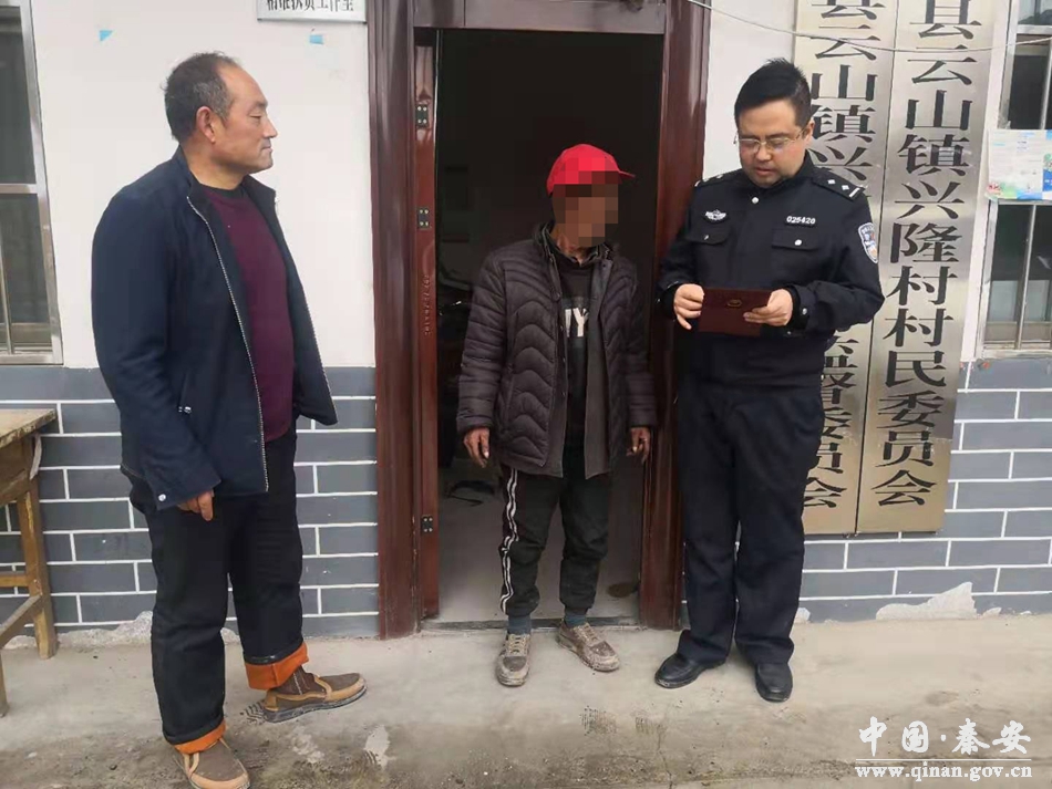 【云山派出所】2020年12月,云山派出所社区民警在进村入户走访期间,发现辖区内兴隆村有一孤身老人无身份证件。经核实,该老人一直在外流浪未办理过户籍登记,日常生活受到严重影响,在天水市麦积区火车站流浪期间,因无户口及有效证件,被麦积区民政局救助返回原籍。