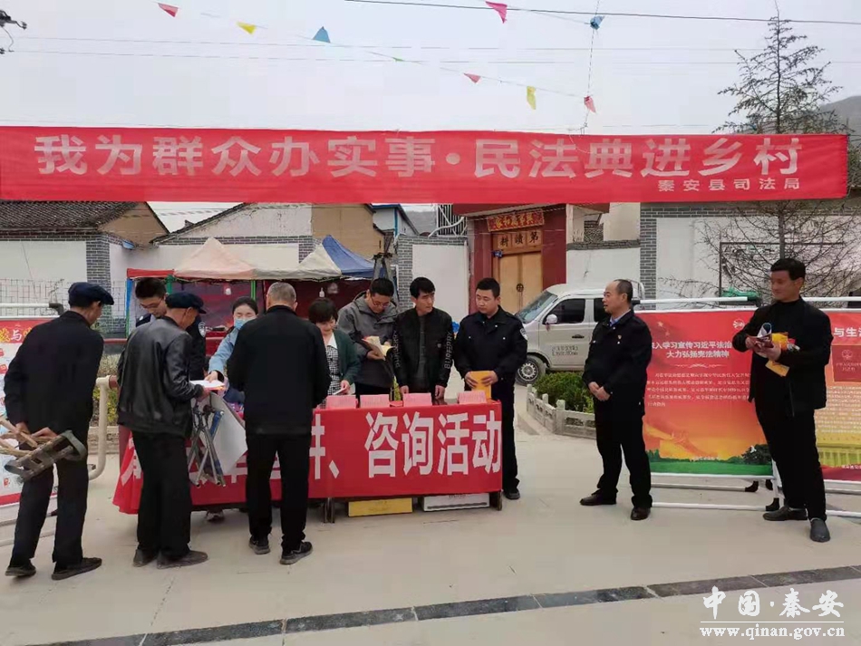 春光无限好,正是“为民普法时”。为进一步加强乡村法治宣传教育,进一步深化政法队伍教育整顿,提高司法行政系统干部为民服务意识,切实践行“我为群众办实事”的宗旨,3月30日下午,秦安县司法局组织相关股室、县公证处、知音律师事务所前往西川镇下王峡村开展《民法典》进乡村普法宣传活动。