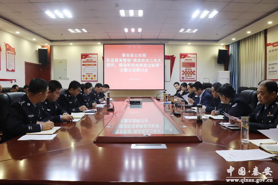 会上,秦安县公安局党委班子成员围绕党史学习教育和队伍教育整顿学习阶段学习收获和心得体会,以“推进政法工作三年大提升,锻造听党指挥政法铁军”为主题,开展了专题交流发言,各述己见,分享学习感悟,并结合分管部门重点工作推进及队伍建设,提出了想法和思路。治安、刑侦等部门负责人围绕本部门教育整顿进展情况、重点工作推进及队伍管理等方面交流了心得体会。通过研讨交流,起到了取长补短、相互借鉴,上下同步,共同提升的效果,为全面推动秦安县公安局党史学习教育和队伍教育整顿走深走实,促进学习教育成果转化凝聚了共识,汇聚了合力。