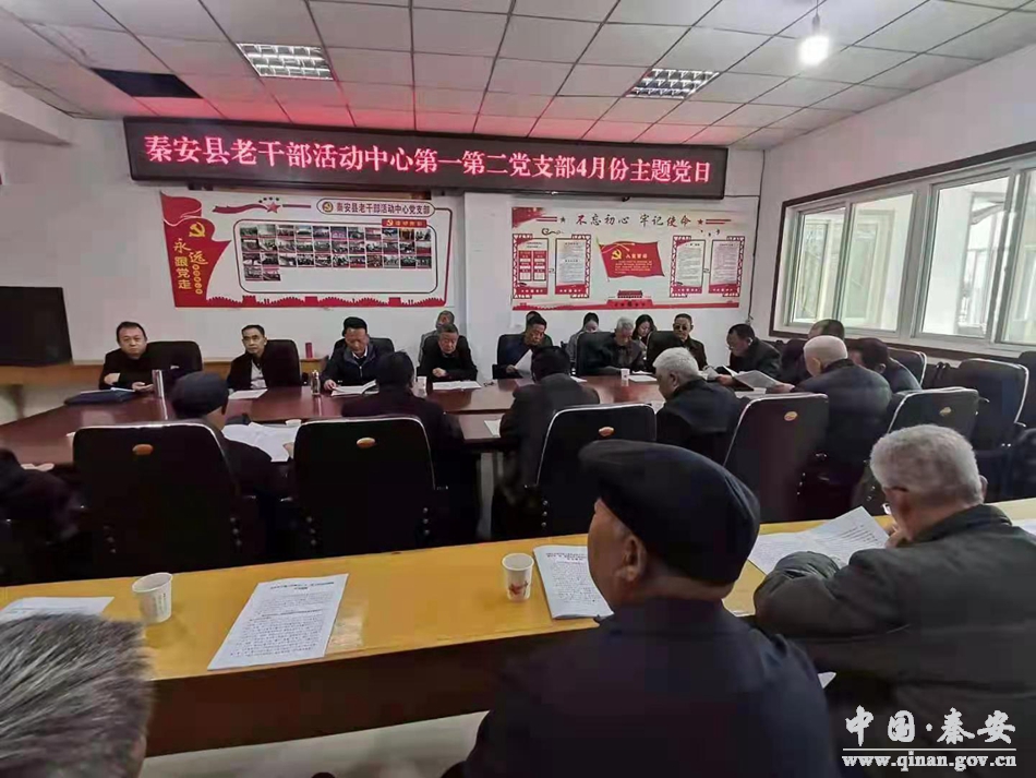 4月2日下午,秦安县老干部活动中心第一、第二党支部4月份主题党日暨党史学习教育动员会议在县老干部活动中心举行,支部离退休老干部、县委组织部工作人员、县委党校讲师共30人参加活动。