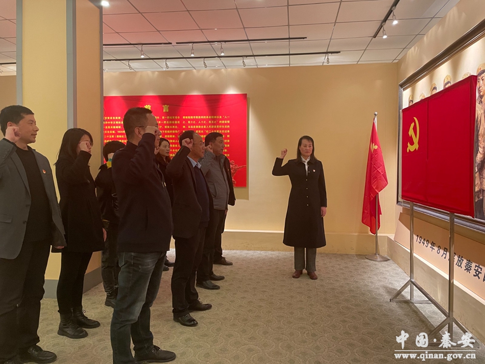 祭扫结束后,全体人员又来到秦安县解放纪念馆进行参观。在纪念馆,全体党员面对鲜红的党旗庄严宣誓,重温了入党誓词。随后,在讲解员的引领下,大家瞻仰了先烈们的英勇事迹,参观了革命实物和历史图片,回顾中国人民解放军解放秦安的伟大战役,寻找革命先烈英勇无畏的足迹与情怀。