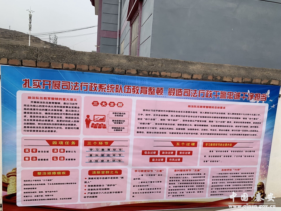 下一步,秦安县司法局将继续开展形式多样的政法队伍教育整顿宣传活动,传播更多的政法正能量,扎实推进政法队伍教育整顿,确保政法队伍教育整顿取得实效,让人民群众切实感受到政法队伍建设的新气象、新变化。