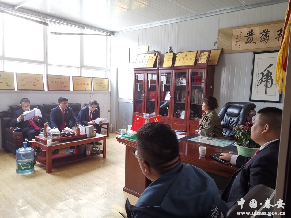 在中国共产党成立100周年之际,为扎实开展党史学习教育和政法队伍教育整顿工作,切实把学习教育成效转化为工作实效。3月30日,按照秦安法院队伍教育整顿领导小组安排部署,秦安法院深入甘肃福雨塑业有限责任公司、甘肃盛源菊香农业发展有限公司、甘肃汇丰药业有限公司,开展“我为群众办实事,送法进企业”调研,听取意见建议,进行交流学习。