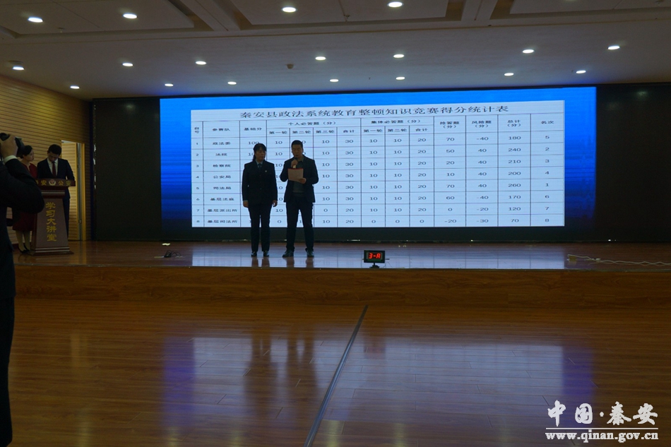 3月25日,为响应现阶段政法队伍教育整顿的相关要求,丰富教育形式,营造学习氛围,检验学习成果。由秦安县政法队伍教育整顿领导小组办公室主办,县委政法委、县法院、县检察院、县公安局、县司法局共同承办举行了政法队伍教育整顿知识竞赛。为使这次比赛活动更加公开、公平、公正,赛前主办单位向秦安县公证处申请对此次比赛全过程进行现场监督。秦安县公证处受理了该项业务后,承办公证员对该活动的预定程序进行了审查,确认其程序的合法性和规则的有效性。