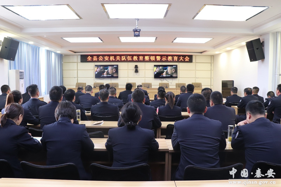 3月23日,秦安县公安局召开全县公安机关队伍教育整顿警示教育大会,会议以视频形式开至各派出所。局党委班子成员、机关全体民辅警在局五楼视频会议室参加,各派出所民辅警在本所收听收看。