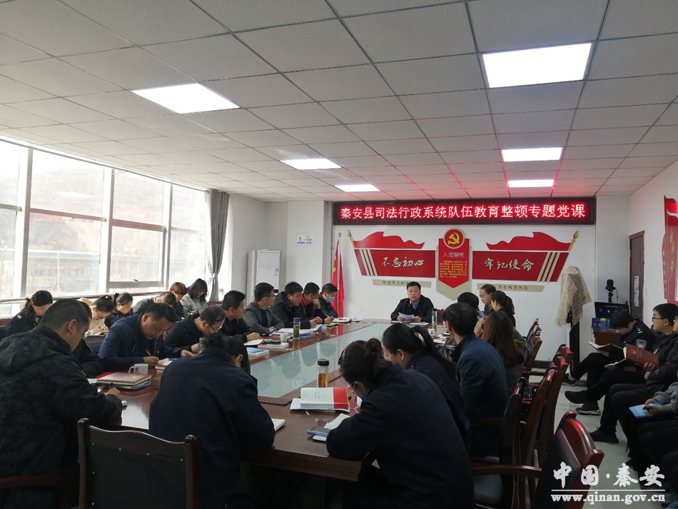 为贯彻落实全县政法队伍教育整顿动员会精神及党史学习教育动员会精神,发挥好党组书记示范带动作用,3月23日上午,秦安县司法局开展了全县司法行政系统队伍教育整顿专题党课活动,全系统干部职工参加。