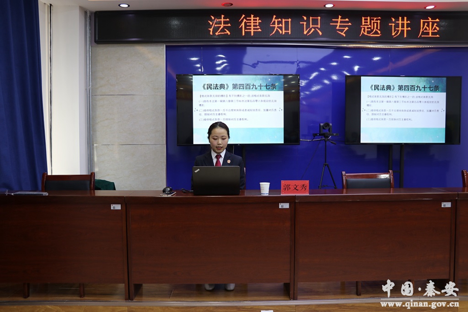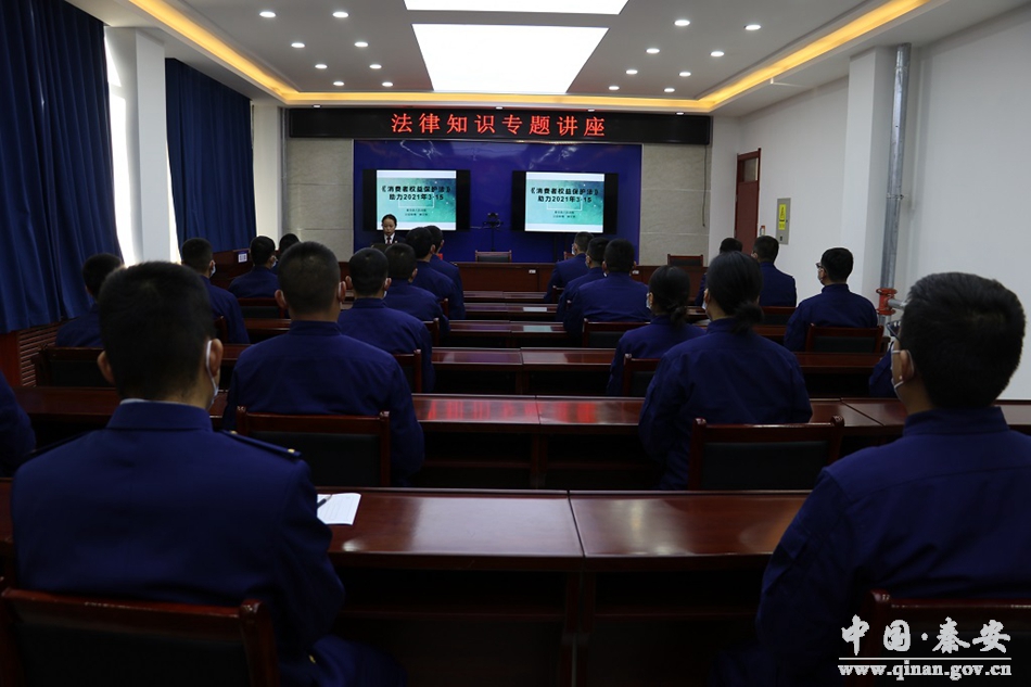为进一步强化全体指战员法治观念,提高指战员学法、懂法、尊法、用法能力,促使指战员养成信仰法治、依法办事的行为习惯,近日,秦安县消防救援大队组织全体指战员开展法律知识专题讲座学习,邀请秦安县人民法院法官助理郭文秀进行授课。秦安县消防救援大队在家党委成员、全体指战员、政府专职队员、消防文员参加了讲座。