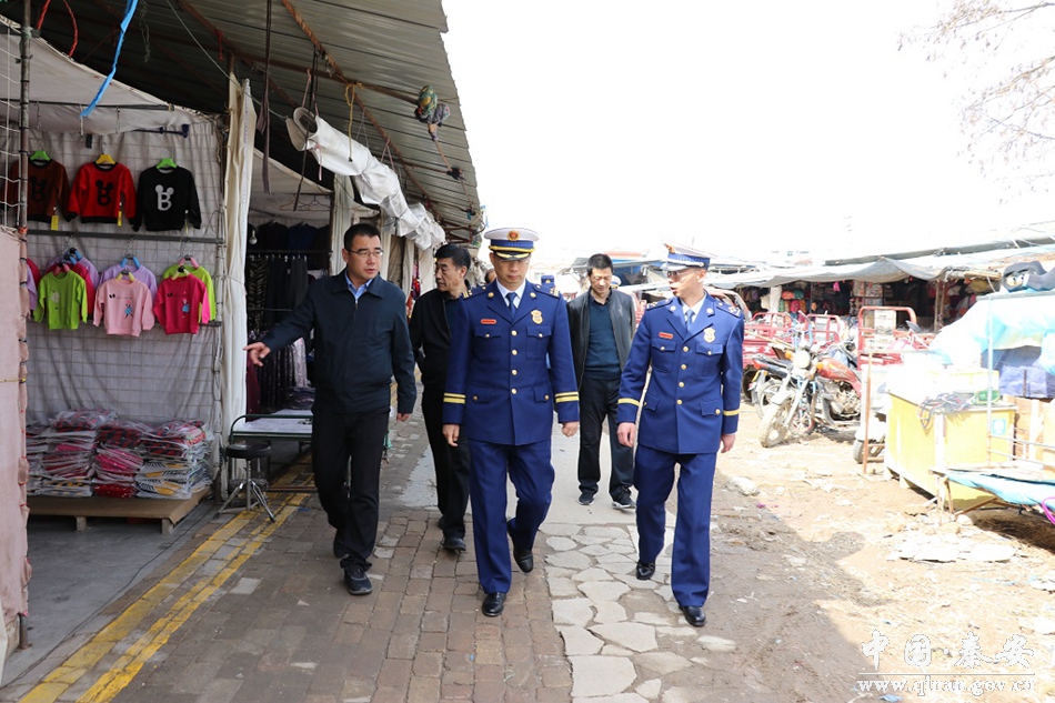 为全力推进重大火灾隐患整改工作,切实加快重大火灾隐患整改进程,确保火灾隐患整改到位,3月9日,天水市消防救援支队支队长牛小强带队,来到重大火灾隐患挂牌单位秦安县小商品批发市场,指导火灾隐患整改工作,副支队长王文平、秦安县委常委、常务副县长文斌一同检查。