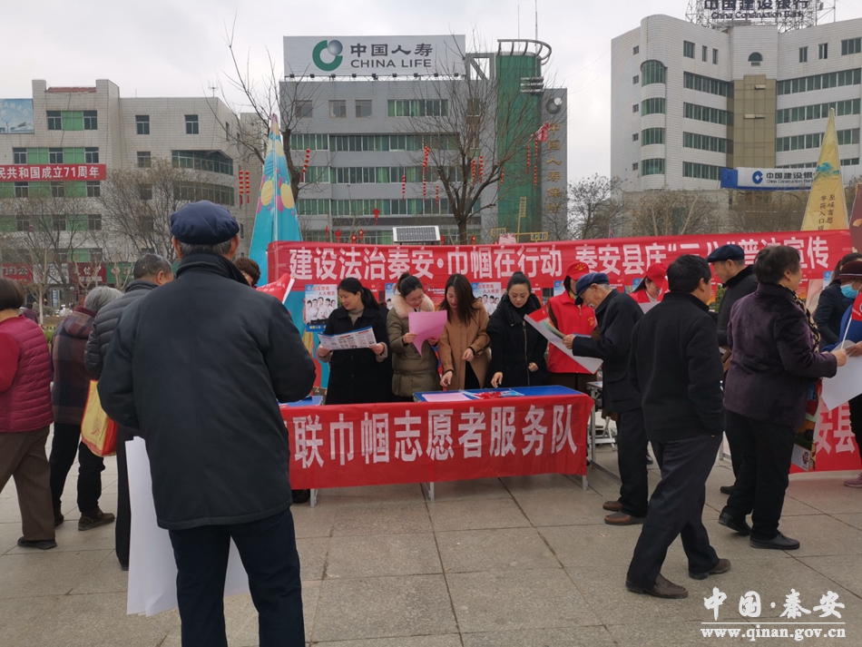 为深入学习贯彻党的十九届五中全会精神及习近平法治思想,强化对妇女的法治宣传教育和维权服务,加大《民法典》的普及宣传,进一步增强妇女儿童法治意识和依法维权能力。3月4日,秦安县妇联联合县法院、县公安局、县司法局在兴国文化广场开展了“三八”妇女维权周集中宣传活动。