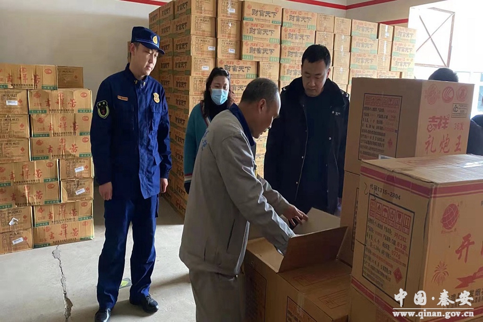近日,秦安县消防救援大队联合多部门深入辖区烟花爆竹销售企业进行消防安全检查,加强易燃易爆场所的消防安全管理,有效地防止火灾事故发生。