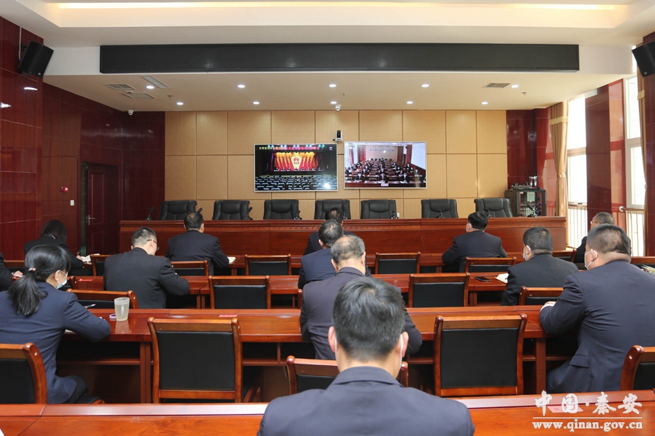 3月2日,秦安县人民法院组织收听收看全国、全省政法队伍教育整顿动员部署视频会议。秦安法院领导班子、审委会专委、各庭室负责人、政治科及监察室全体干警参加会议。