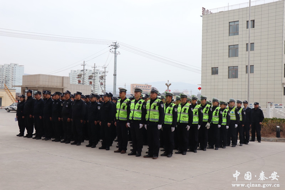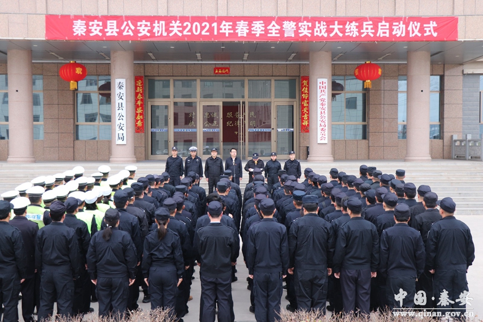 3月3日,秦安县公安局全警实战大练兵春训工作启动仪式在县局院内举行。在家局领导,局机关、交警大队全体参训民辅警100余人参加启动仪式。