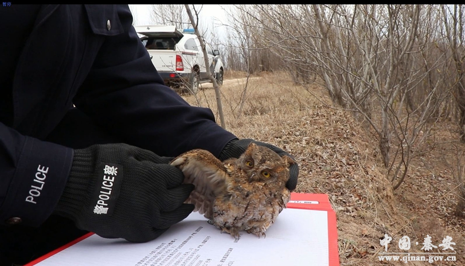 3月30日8时许,秦安县公安局精心救助一只误闯单位办公楼的猫头鹰并送其回归自然。