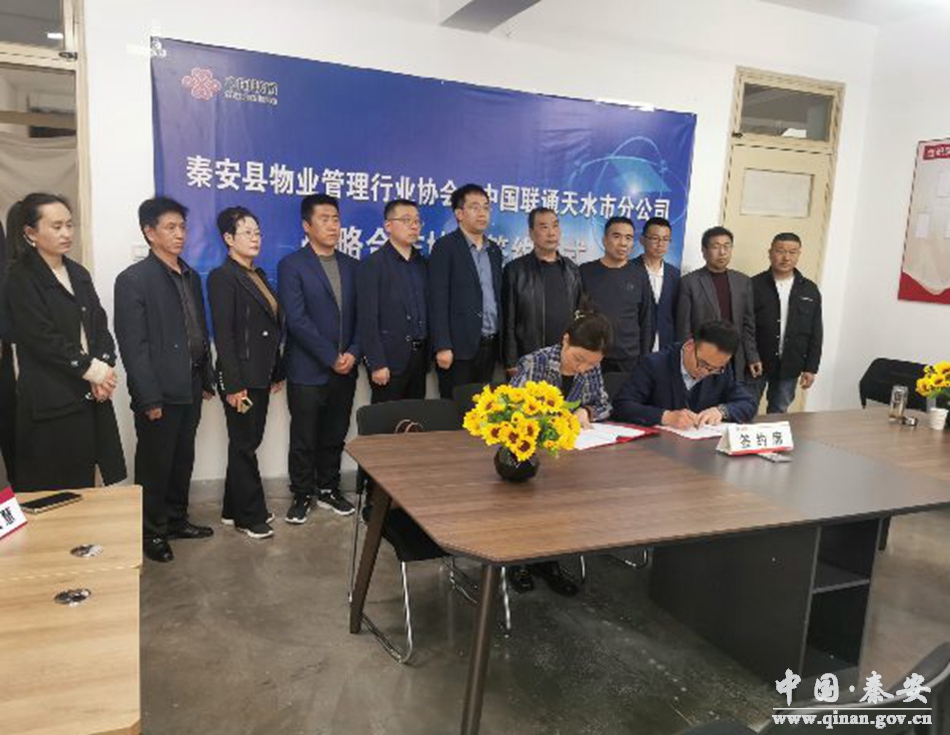 为加强小区物业管理,探索创新物业管理模式,解决物业管理重点难点问题,3月31日,秦安县物业管理行业协会与中国联通天水市分公司签订战略合作框架协议。中国联通天水市分公司党委委员、副总经理徐东东,秦安县房管局负责人、秦安县物业管理行业协会负责人、中国联通天水市分公司市场部负责人、中国联通秦安县分公司负责人、各物业公司负责人参加签约仪式。