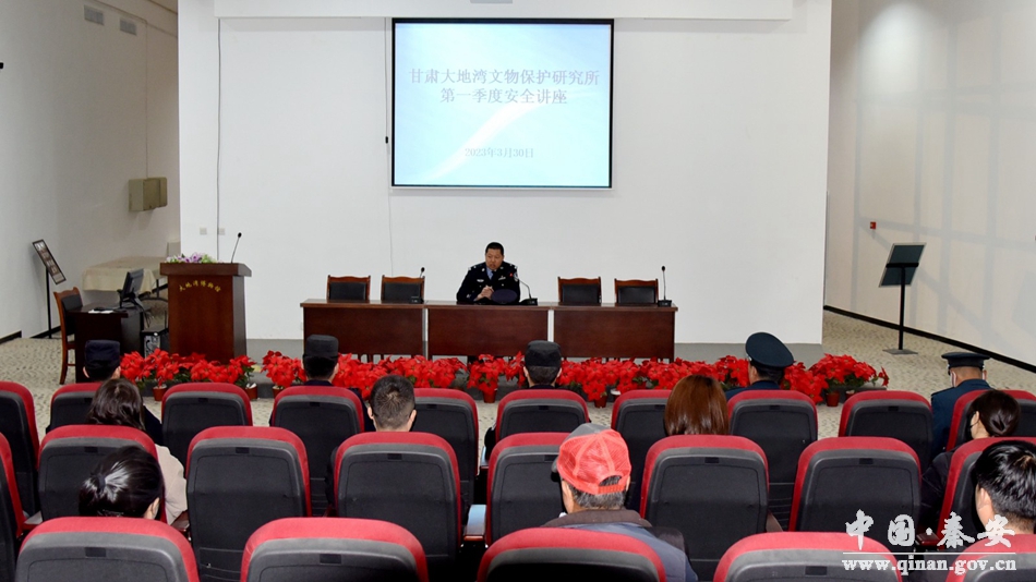 为全面落实“三抓三促”行动部署要求,切实增强大地湾景区职工安全防范意识,筑牢景区安全管理防线,提高景区职工的应急处置技能和逃生自救知识,加强景区职工面对突发事件的紧急疏散能力,营造良好安全文明的旅游环境,4月1日,秦安县公安局五营派出所组织民辅警深入大地湾文物管理所开展了安全知识讲座活动。