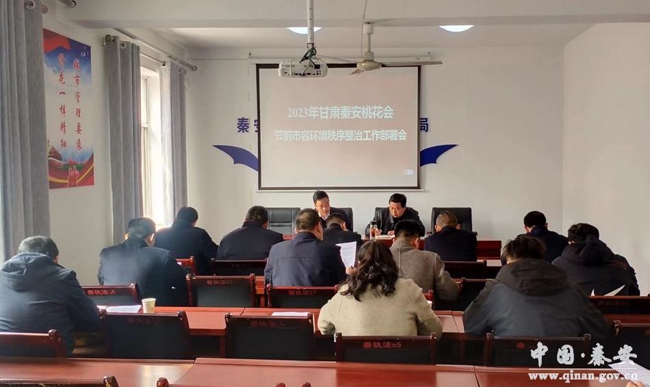 为保障桃花会期间市容环境秩序,展示卫生干净、秩序井然、市容整洁的城市形象。4月4日,秦安县住建局、执法局组织相关职能部门和各大网络运营商在县执法局四楼会议室召开桃花会节前环境秩序整治工作部署会议,为2023年桃花会前营造干净整洁、规范有序的城市环境提供有力保障。