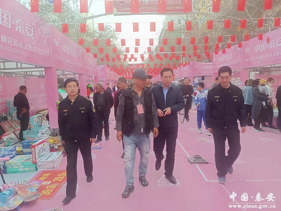 2023年甘肃秦安桃花会盛大开园。连日来,秦安县市场监管局立足岗位职责,聚焦食品安全,局所联动,强化监管,集中力量对节会特色美食展、旅游景点餐饮摊点等开展食品安全专项检查行动,进一步防范化解食品安全风险,营造安全放心的食品安全环境,确保桃花会圆满顺利进行。
