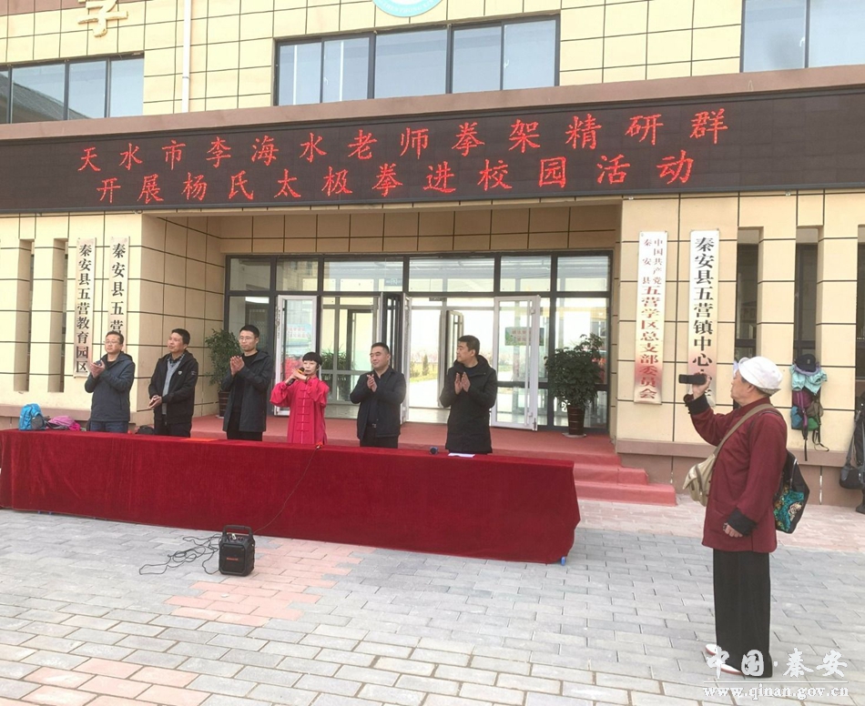 4月12日,天水市李海水老师拳架精研群杨氏太极拳表演活动在五营镇学区举行,天水市李海水老师拳架精研群的老师、学区师生代表等200余人参加活动。