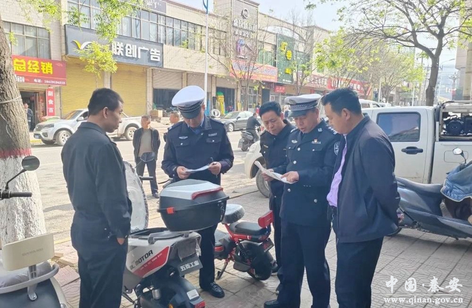 为进一步提高电动车、摩托车驾驶员的交通安全意识,强化源头管理,消除安全隐患,落实“减量控大”工作要求。4月25日,秦安县公安局交警大队车管所负责人联合市场监督管理局工作人员深入辖区6家电动自行车销售点,积极开展隐患排查及交通安全宣传工作。