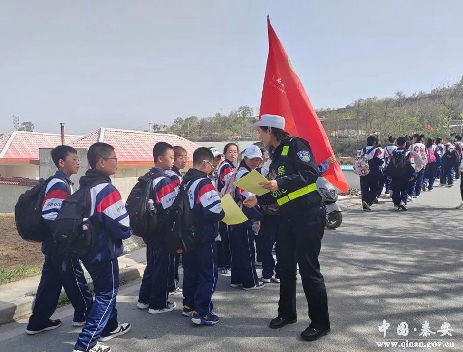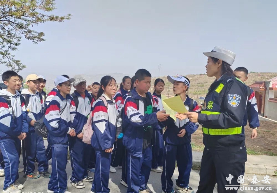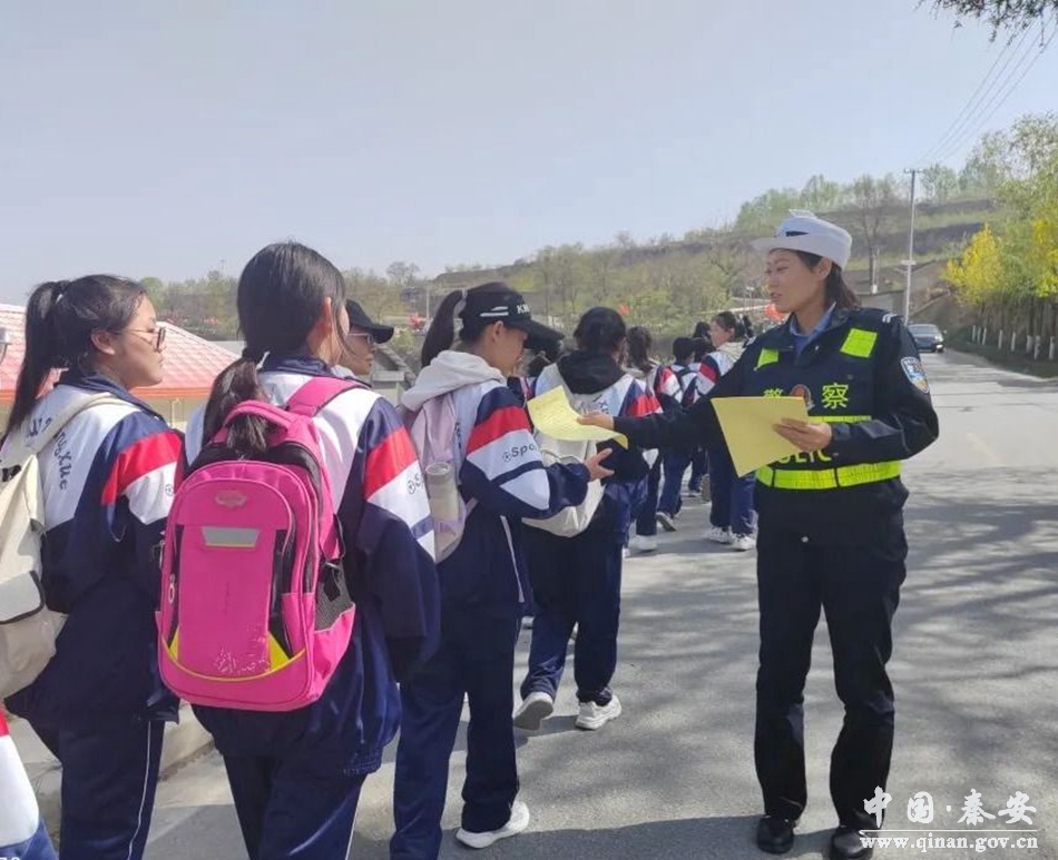 秦安公安交警为保障学生们春游拉练时的道路交通安全,预防和减少道路交通事故的发生,城区中队以学校需求为导向,积极和学校联系,针对学生人数多、路线长、涉及路口多、地点覆盖广、交通状况复杂等情况,做到提前规划,合理安排警力,为学生远足拉练活动保驾护航。同时,宣传民警借助这一契机,根据中学生的年龄认知特征,以通俗易懂的宣传方式向中学生普及道路交通安全知识,并结合典型事故案例讲解在上下学途中可能遇到的一些交通安全状况,让全体中学生受到教育,做到自觉遵守交通法规。
