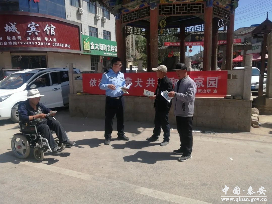 为进一步提高群众依法养犬、文明养犬意识,助力营造整洁优美、和谐安全的社会氛围,5月23日,秦安县公安局陇城派出所组织开展了“依法文明养犬 共建和谐家园”文明养犬宣传活动。
