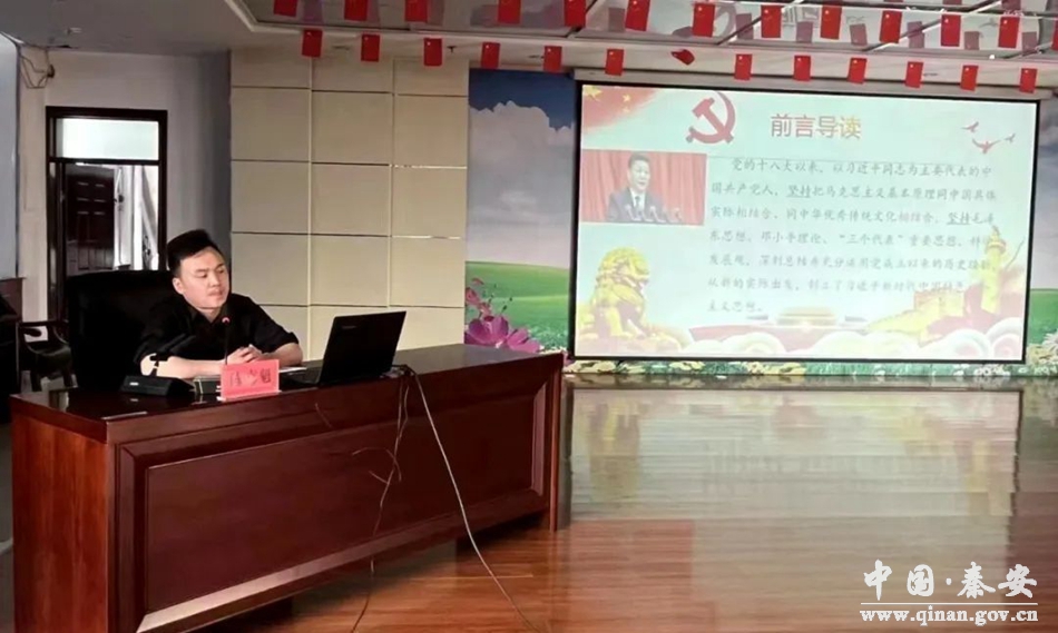 陈书霞作了题为《奋进新征程的马克思主义纲领性文件——学习贯彻党的二十大精神》的专题辅导。陈书霞重点围绕党的二十大召开的时代背景、党的二十大报告的总体框架、党的二十大报告的突出亮点三个方面作了全面阐释和深入解读。陈书霞在讲授中强调,广大党员要通过多种方式学习贯彻党的二十大精神,努力践行到工作岗位上,为建设幸福美好新秦安贡献智慧和力量。