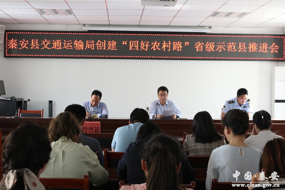 为积极推动秦安县争创省级“四好农村路”示范县,近日,秦安县交通运输局组织召开创建“四好农村路”省级示范县工作推进会。会议传达了省厅对“四好农村路”示范县复核工作的相关要求,通报了“四好农村路”省级示范县当前工作进展情况和创建工作准备情况,并对今年农村公路建设情况及下一步“四好农村路”示范县创建工作进行安排部署。