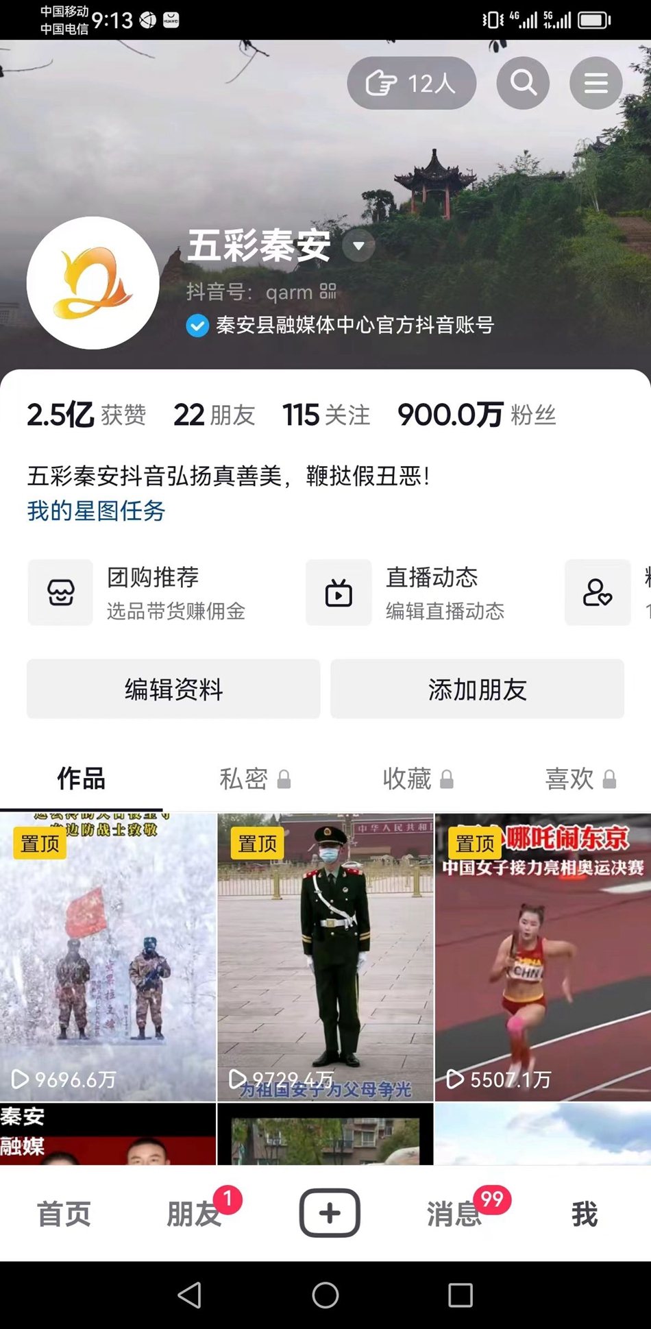 5月8日,“五彩秦安”抖音号粉丝总数达900万,账号作品总获赞2.5亿,数据创账号运营以来新高。