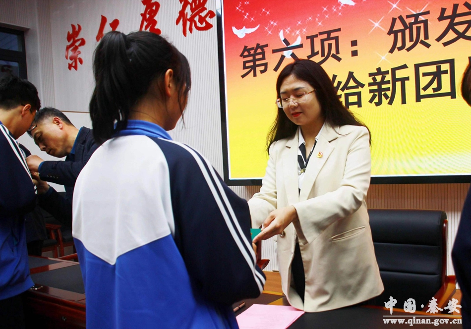 随后学校负责人为新团员颁发团员证、佩戴团徽。活动在新老团员们郑重而庄严的宣誓中宣告结束。
