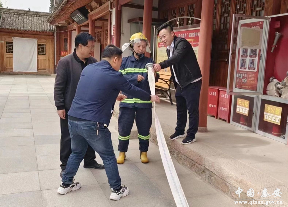 消防安全知识培训结束后,全馆工作人员在兴国寺院内进行了消防安全现场演练,教官对馆内人员从消防应急处置、灭火器使用方法、消火栓使用方法、灭火技巧等方面进行了现场指导。并组织大家轮流上阵,进行灭火器和消防栓的实操训练。大家手持灭火器,按要求对准起火点进行灭火,操作规范,达到了预期效果。