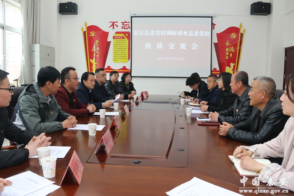 为贯彻落实习近平总书记在中央党校建校90周年庆祝大会暨2023年春季学期开学典礼上的重要讲话精神,加强县级党校之间的学习交流互鉴,全面提升管理水平和办学质量。4月27日,秦安县委党校领导班子成员和部分教师赴清水县委党校调研交流。