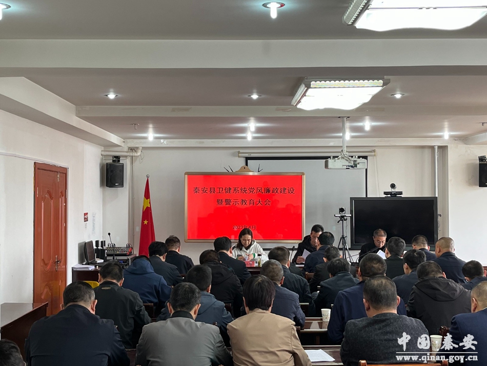 为切实加强秦安县卫生健康系统党风廉政建设,深入落实全面从严治党工作,4月28日,秦安县卫生健康局组织召开全县卫健系统党风廉政建设暨警示教育大会。驻教育卫健纪检组组长,局班子成员,县直各医疗卫生单位负责人,各镇卫生院、卫生分院院长,局机关各股室负责人共40余人参加会议。