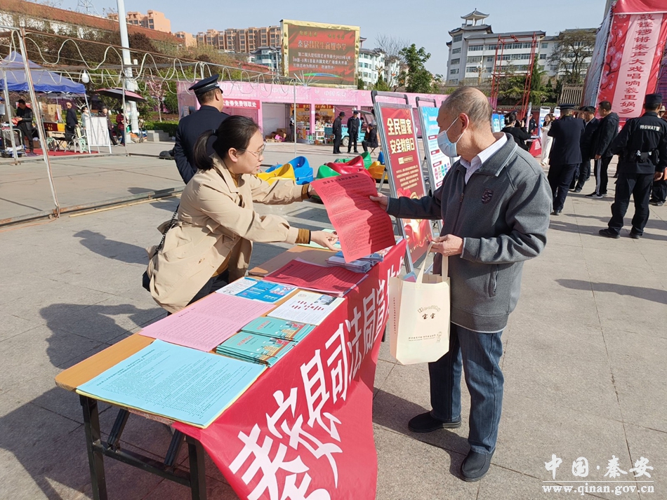 4月15日上午,县司法局机关工作人员和普法志愿者来到秦安县文化广场进行了集中普法宣传活动,进一步增强广大人民群众国家安全意识,营造全社会维护国家安全的浓厚法治氛围。