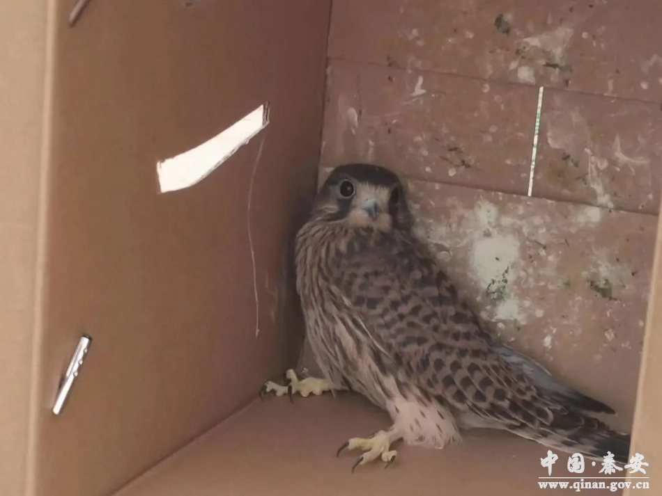 近日,秦安县公安局森警大队与群众爱心接力,成功救助一只国家二级保护动物——红隼。