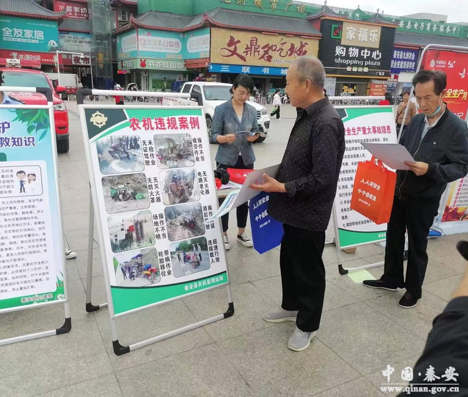 今年6月是全国第22个“安全生产月”,也是第22个农机“安全生产月”,为深入宣传贯彻习近平总书记关于安全生产的重要论述,提高广大农民群众安全生产意识,营造良好的农机安全生产氛围,秦安县农业农村局精心组织,以“人人讲安全、个个会应急”为主题,采取进集市、进庙会、进农家、进合作社、进田间“五进”宣讲方式,在全县17镇开展农机安全操作规程、农机具检修和法律法规常识等宣传活动。
