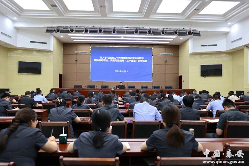 为深入推进“三抓三促”行动、“铸忠诚警魂”活动,引导督促全院干警在学习上下苦功夫,在提升履职能力上走在先,近日,秦安法院党组书记、院长杨宏权以“深入学习贯彻党的二十大精神和习近平法治思想,坚持能动司法、实现司法裁判政治、法律、社会三个效果的有机统一”为题为全院干警作了专题授课。