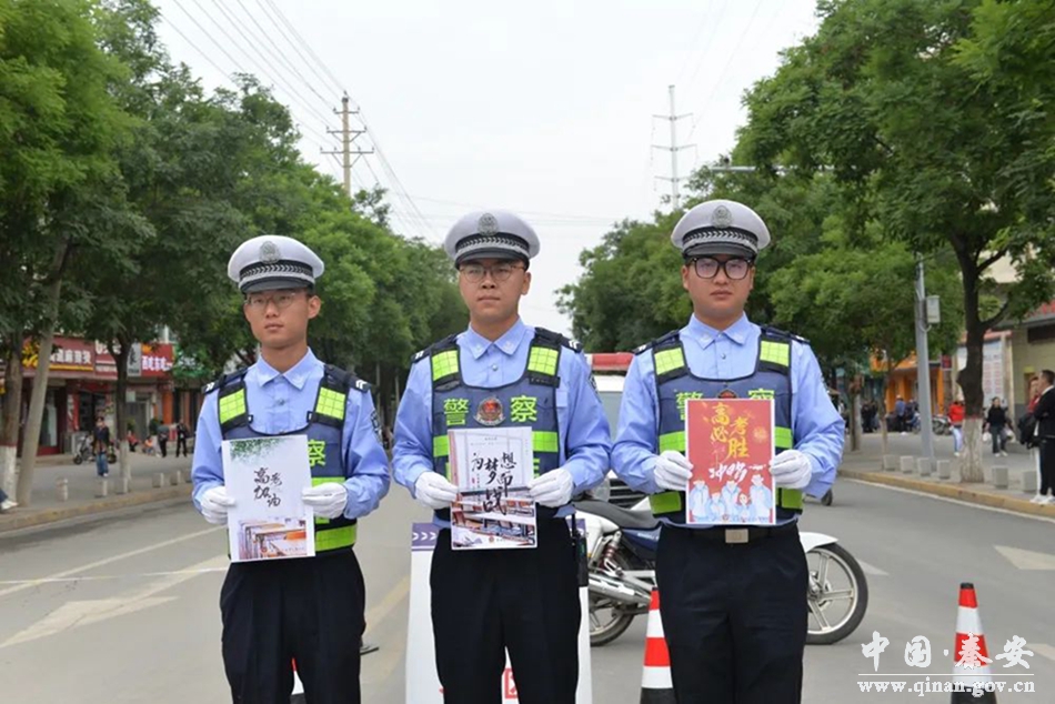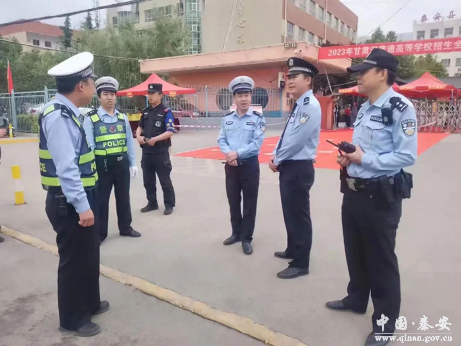 秦安县公安局交警大队领导现场指导督促高考安保工作,对高考期间道路交通安保工作进行部署安排。所有执勤民、辅警提前一小时到岗,对考点周边道路进行临时交通管制,放置禁行、禁鸣等警示标牌,分流疏导的同时全面开启静音模式,减少交通噪声对考生的负面影响。同时,开通“高考直通车”对所有考生提供系列暖心服务保障,为忘带身份证、准考证、紧急补办证件的考生和车辆开辟“绿色通道”,及时妥善处理考生及家长的报警求助,助力高考顺利进行。