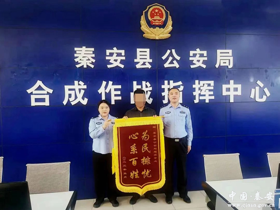 6月6日15时许,张先生来到秦安县公安局指挥中心,为帮助其找回手机的110接警员送上了一面印有“为民解忧,心系百姓”的锦旗以表致谢。