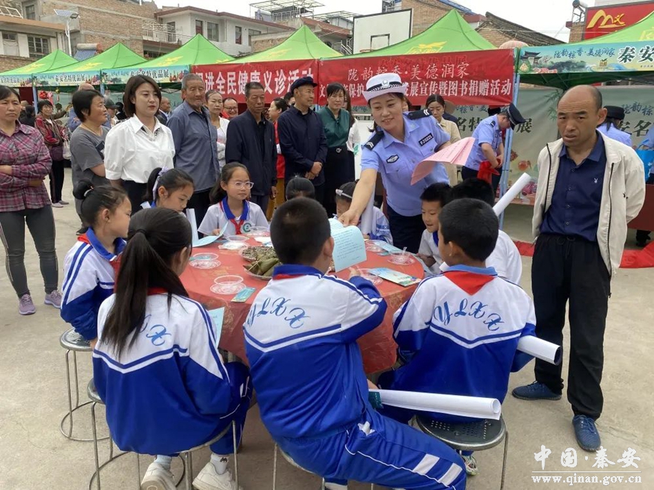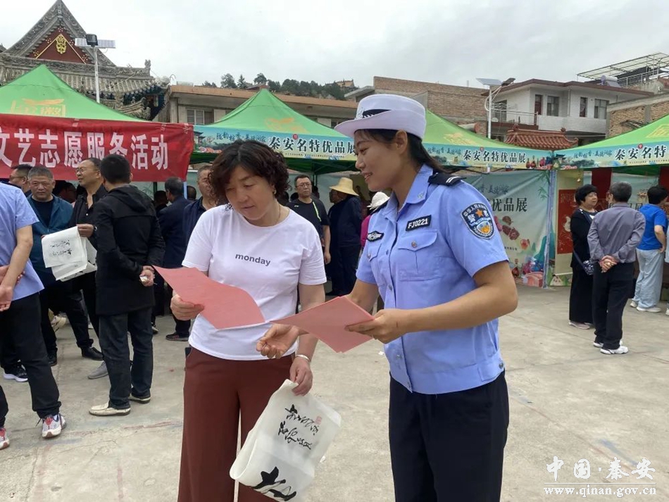 6月19日,兴国镇在凤山社区广场开展“陇韵粽香•美得润家—2023我们的节日•精神的家园”端午主题活动。秦安县公安局交警大队借助这一活动,组织宣传民辅警走进凤山广场开展交通安全宣传活动。