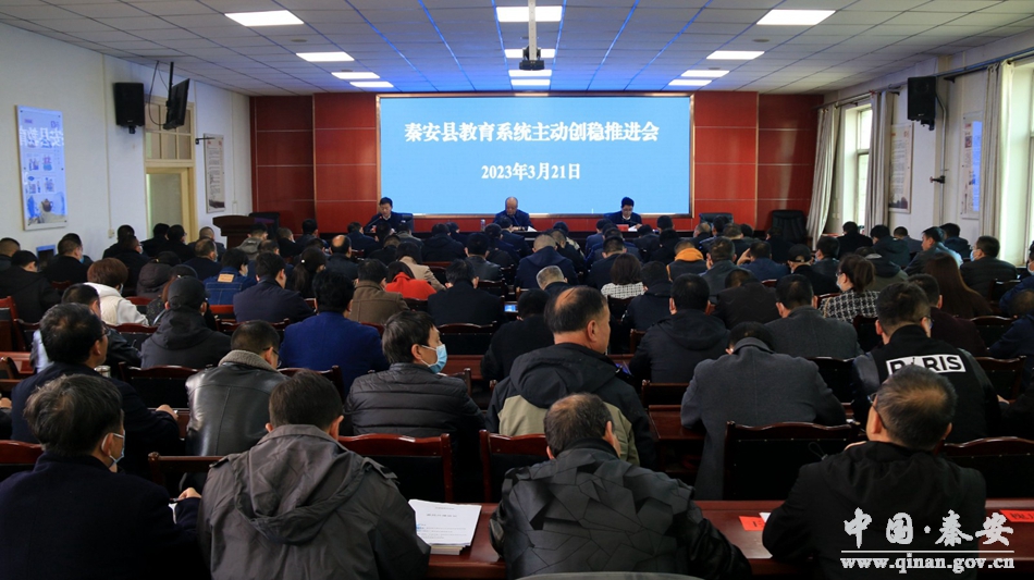 3月21日,秦安县教育系统召开主动创稳推进会,深入学习贯彻党的二十大精神和习近平总书记关于政法工作的重要指示精神,全面贯彻落实省、市、县主动创稳推进大会精神,动员全县教育系统进一步提高政治站位,主动创稳、有效维稳、全力保稳,为加快建设社会主义现代化幸福美好新秦安守牢安全底线,筑牢稳定根基。县教育局班子成员、科级干部、股室长,各学区、各学校书记或校长(园)长共计90余人参加会议。