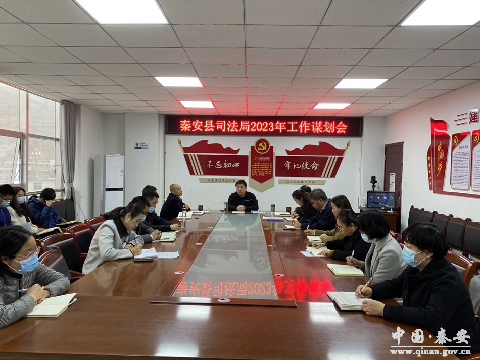 为持续推动法治政府建设和全县司法行政工作高质量发展,践行“三抓三促”行动,3月20日,秦安县司法局召开2023年工作谋划会,听取下属各单位、机关各股室工作意见和建议,系统谋划2023年工作。局领导班子成员、各司法所长、局机关各股长,公证处、天水知音律师事务所负责人参加会议。