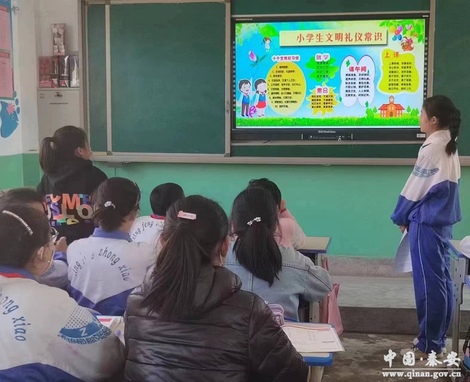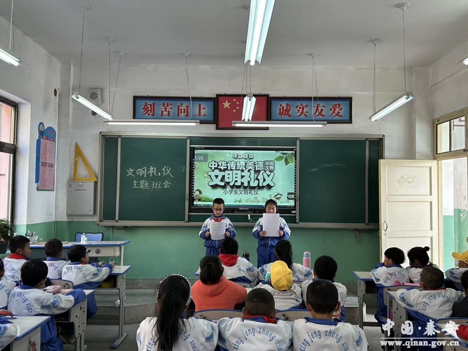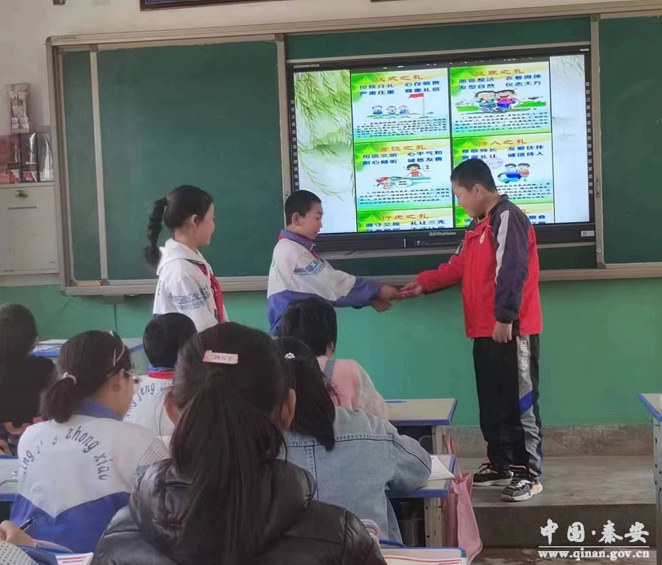 在各班举行的“文明礼仪记心中”主题班会中,组织学生们学习了《中小学生日常行为规范》和《小学生守则》,培养青少年尊敬师长、孝敬父母、关爱伙伴、诚实守信的优良品质。同时,各班班主任联系班级实际,围绕“什么是文明礼仪”“礼仪的原则”“你知道的校园礼仪”“校园文明规范”“校园不文明的行为”等详细地给学生进行了文明礼仪教育。