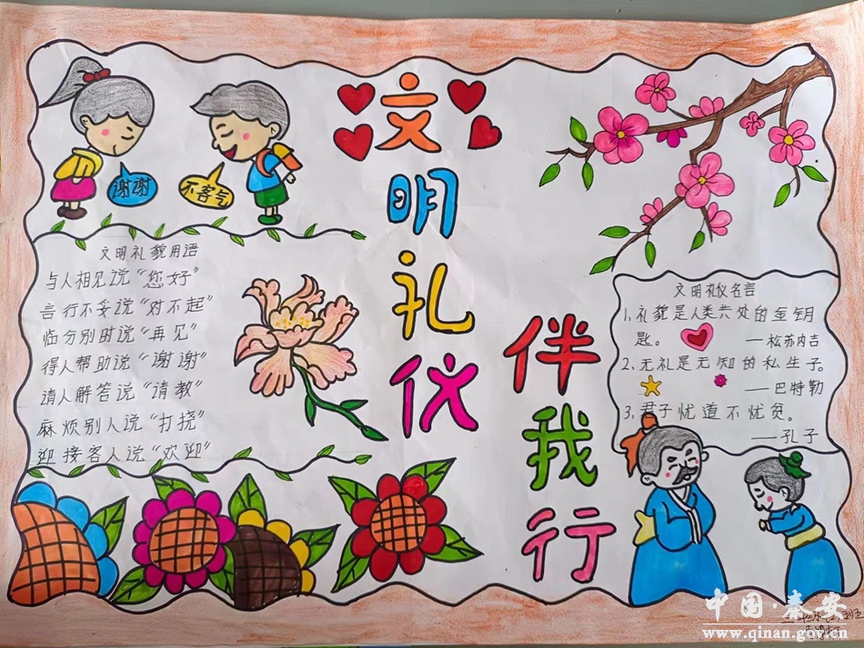 “做一张文明礼仪手抄报”“写一篇文明礼仪记心中主题征文”等活动,也得到了学生们的积极参与。一张张手抄报绘声绘色,精美简洁,一篇篇征文生动形象,文采飞扬,彰显了学生们青春向上,文明自信的精神风貌。并通过评选奖励,进一步培养学生们积极参与的意识,提高了他们的绘画、习作能力,促进全面发展。