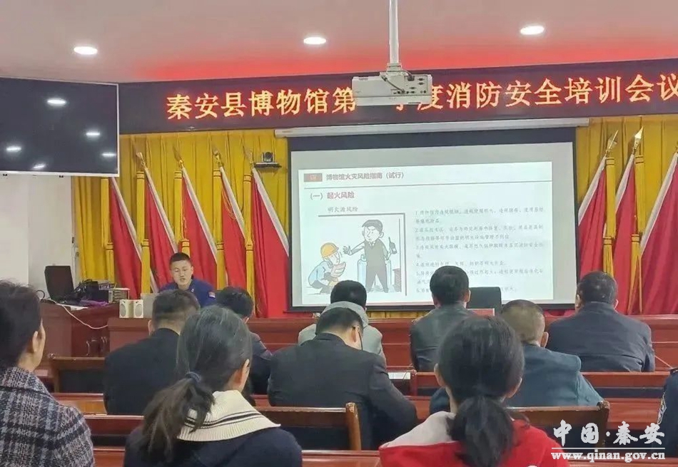 为进一步加强消防安全管理和消防安全教育,强化文物消防安全责任,增强火灾预警防控能力,提高干部职工消防安全常识和火灾自防自救能力。3月17日,秦安县博物馆特邀秦安县消防救援大队为全馆工作人员开展了第一季度消防安全知识培训暨消防安全演练活动。
