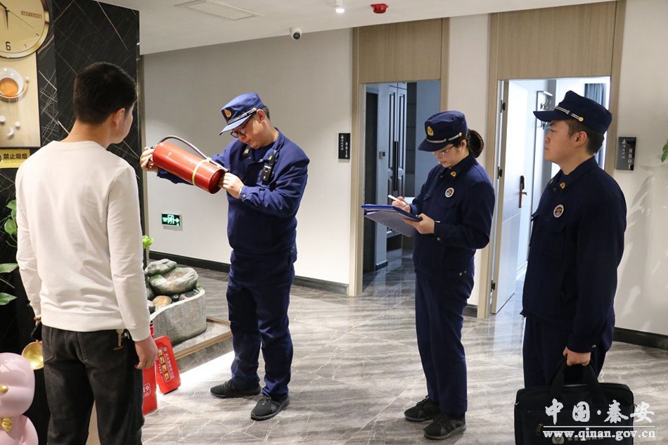 为进一步加强辖区宾馆消防安全管理,全力推进宾馆火灾隐患排查整治,确保辖区消防安全形势稳定,近日,秦安县消防救援大队深入辖区宾馆进行了全面消防安全专项检查。