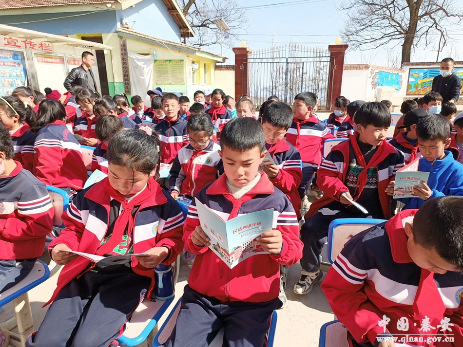 3月9日,秦安县司法局法治副校长走进王窑学区韩湾小学开展法治进校园专题普法宣传活动,履行法治副校长职责,王窑学区韩湾小学和彭家小学两所学校共100余名师生参加活动。